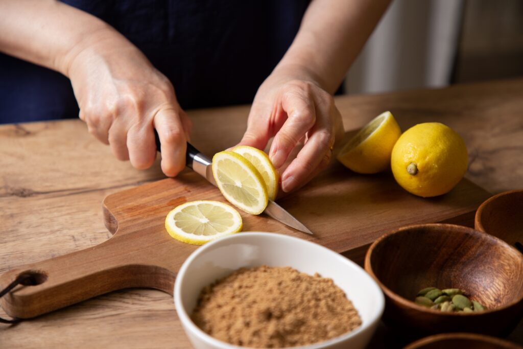- レモンを下準備する 水洗いし、水気を完全に拭き取ります(水分が残っているとカビの原因になります)。5mm幅の輪切りにし、種を丁寧に取り除きます。