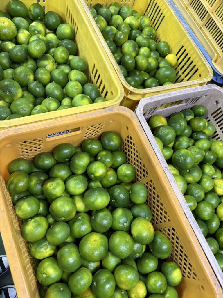 極早生みかん!初物が入荷しましたよ♪・・・みかんの通販 2025.10.03 首を長くして待っていた秋の味覚『極早生みかん』がとうとう入荷しました!!!!! 見た目は青くても中身の酸味が下がっているのでもちろん食べられます♪ 初物を先に味見しちゃいました・・・みんなごめんね・・・(‘ω’) 味は適度な酸味があり、雨が少なかったからか平年より糖度が高い感じです!美味しく味見に3つ食べたのは内緒です!! これから続々と美味しいみかんが収穫されますので年明けまでどんどんご注文をお待ちしております♪♪ みかんの会 HP