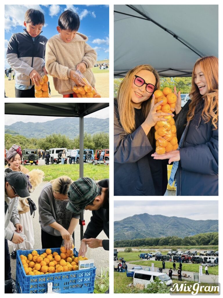 11月2日はジムニー愛好会家たちの集まるイベントでの出店でした!遠方からもジムラー達が集まり和歌山の九度山町から有田川町へ走るイベントに参加されていました。数百台のジムニーが一同に集まると圧巻の景色です。ゴール地点の有田川の河川敷でお待ちしてると続々と買い物にきてくださいました♬和歌山のみかんはやっぱり美味しい!と、笑顔溢れるイベントでした♪♪