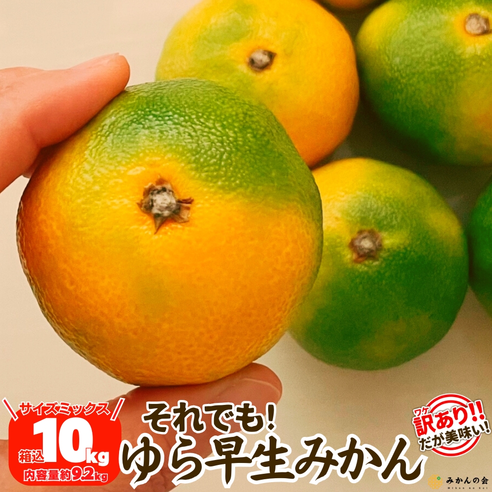 【2026年10月下旬より出荷】 訳あり それでも ゆら早生 みかん 箱込 10kg ( 内容量 9.2kg ) サイズミックス 和歌山県産 有田みかん